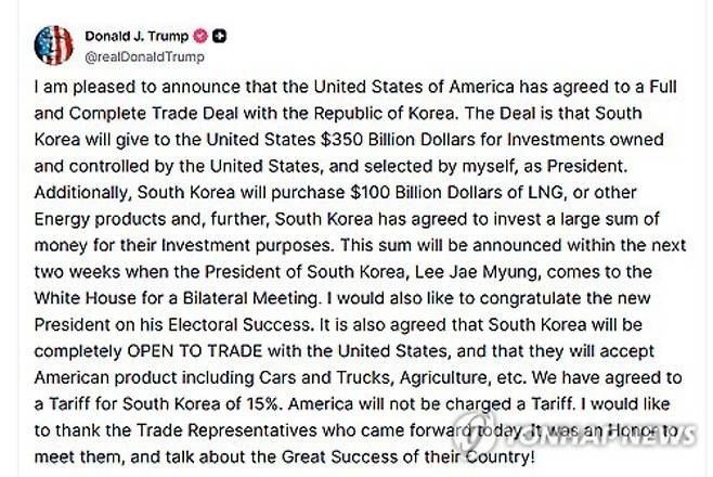 ◇ 손수호> 바로 어제 이 시간에 트럼프 대통령이 SNS에 글을 올렸는데요. 미국과 한국이 전면적이고 완전한 무역 합의를 체결했다. 관세 유예 시한을 하루 앞두고 전격 합의가 이루어진 건데요. 원래 그 후에 있을 2+2 회담 후에 대통령을 만날 걸로 봤는데 갑자기 연락을 받고 가서 만나서 타결까지 된 겁니다. 시한을 넘기는 거 아닌가 걱정했는데 일단 이렇게 무사히 타결은 됐고요. 하지만 중요한 건 그 내용이겠죠. 상호 관세는 25%에서 15%로 내려갔고 그 대신에 3,500억 달러 이게 우리 돈으로 490조 원이나 됩니다. 이런 대미 투자를 진행하기로 했습니다. 또 한편 소고기나 쌀 시장 추가 개방은 하지 않기로 했고요. 이번 협상 결과 어떻게 봐야 할지 한미 FTA 체결 당시에 기획단장으로 협상을 이끌었던 분입니다. 한국외대 이혜민 교수님 모시고 자세히 살펴보겠습니다. 교수님 안녕하십니까?