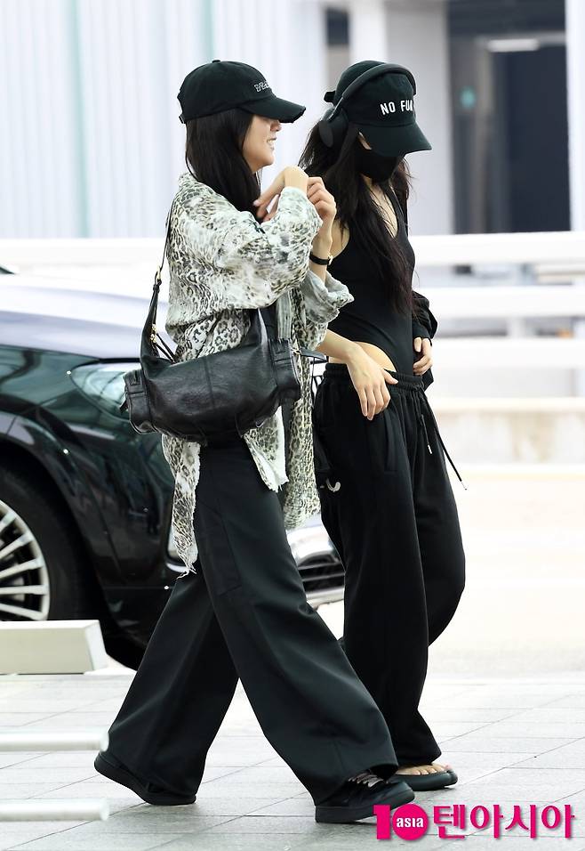 [텐아시아=조준원 기자]그룹 블랙핑크(지수, 제니, 로제, 리사) 지수와 제니가 1일 월드투어 참석차 인천국제공항을 통해 프랑스로 출국하고 있다.