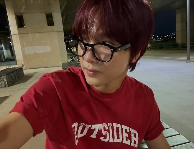 공개된 사진 속 해찬은 빨간색 반팔 티에 찢어진 청바지로 편안하면서도 멋스러운 패션을 선보이고 있다.