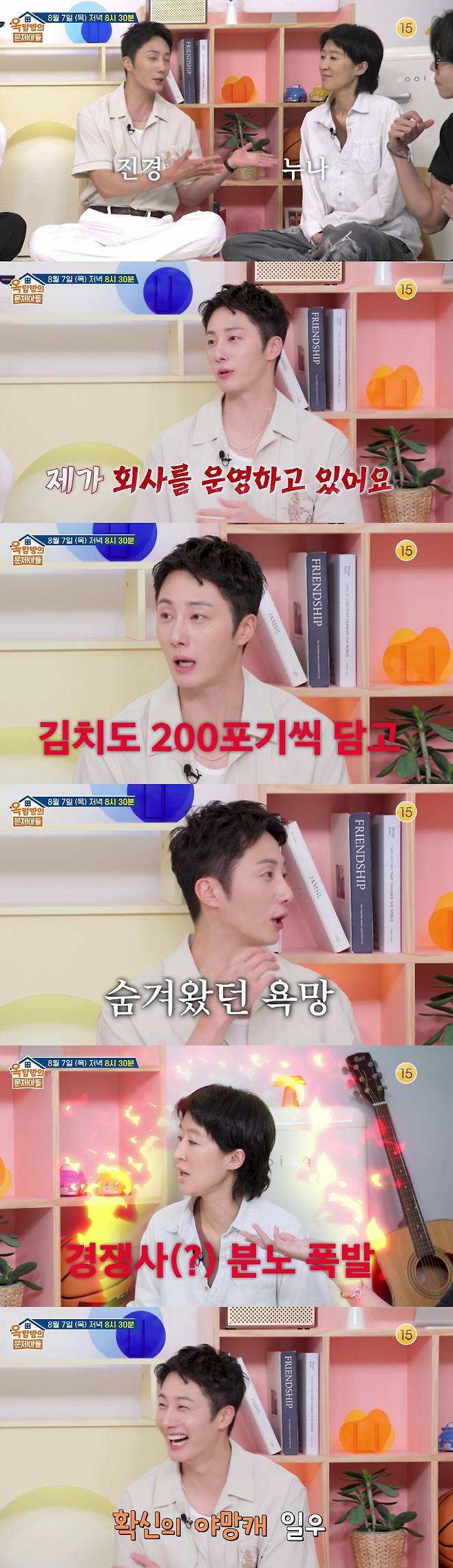 예상치 못한 고백에 홍진경이 "왜 나냐"며 설레는 반응을 보이자, 정일우는 "제가 지금 회사를 운영 중인데, 직접 김치를 200포기씩 담그고, 만두도 개발했다"고 밝혀 모두를 놀라게 했다.