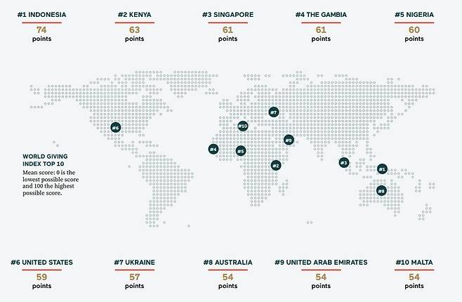 | ▲ 국제나눔지수 상위 10개 국가 World Giving Index 2024 |