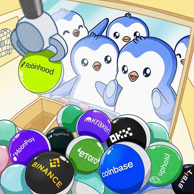 PENGU는 현재 미국의 코인베이스(Coinbase), 로빈후드(Robinhood), 한국의 업비트(Upbit) 등 상장 기준이 엄격한 거래소를 포함해, 총 130개 이상의 글로벌 거래소에 등재됐다. 이는 유통 범위를 극대화하려는 전략의 일환으로, PENGU의 접근성과 거래 편의성을 끌어올렸다는 평가다.