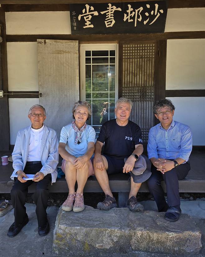 | ▲ 문재인 전 대통령이 지난해 전남 신안에서 여름휴가를 보낸 데 이어 올여름은 신안 흑산도에서 휴가를 즐겼다. 흑산도 정약전 유배지인 사촌서당에서 김희중 대주교(왼쪽 첫 번째)와 함께 찍은 사진. |