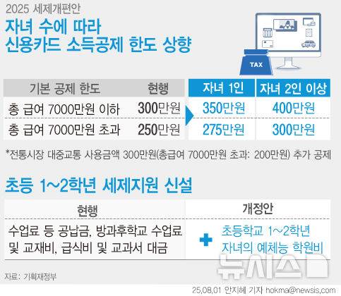 [그래픽] 자녀 1명당 신용카드 공제 50만원↑…저학년 예체능 학원비도 공제