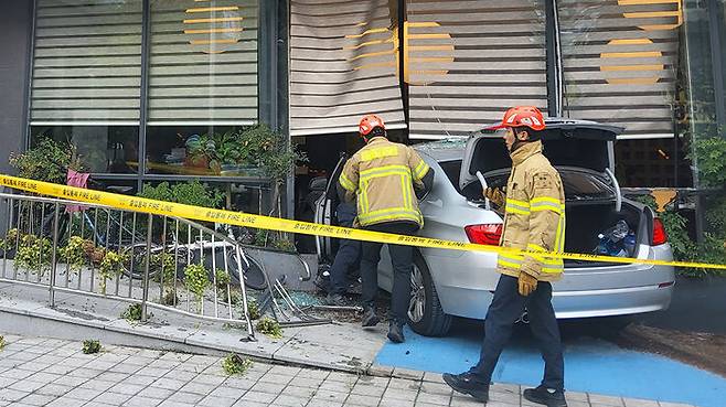 오늘(1일) 오후 2시쯤 경기 용인시 수지구 상현역 인근의 한 식당에 60대 남성 A 씨가 몰던 승용차가 돌진하는 사고가 났습니다.