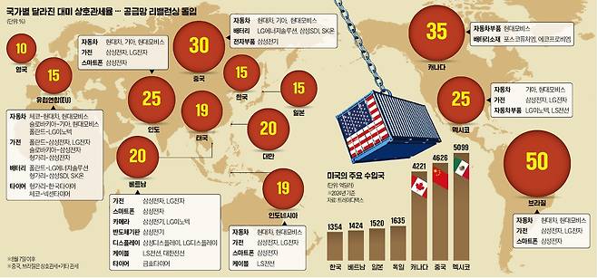 캐나다 관세 35%, 인도 25%…'공급망 셈법' 머리 싸맨 기업들