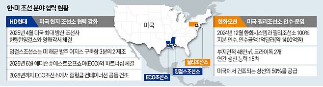 이런 상황은 200여㎞ 떨어진 백악관에 실시간으로 보고됐다. 도널드 트럼프 대통령은 이들의 보고를 받은 뒤 한·미 관세 협상 문서에 사인할 펜을 꺼내 들었다. 다음 날 최종 타결된 관세 협상의 마지막 고비를 조선 협력 프로젝트 ‘마스가(MASGA·미국 조선업을 다시 위대하게)’로 넘는 순간이었다.