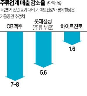 다른 주류 업체도 실적 부진이 불가피하다는 전망이 나온다. 키움증권에 따르면 하이트진로와 롯데칠성의 주류 부문 매출은 2분기 매출이 전년 동기 대비 각각 1.6%, 5.6% 감소했을 것으로 추정됐다. 하이트진로는 6월 주요 맥주 제품 출고가를 평균 2.7% 올려 OB맥주와 비슷한 수요 감소를 겪었을 것으로 분석됐다. 주류업계 관계자는 “1분기 소주, 맥주 가격 인상에 대한 우려가 커지면서 미리 쟁여놓자는 수요가 나타났고, 이게 2분기 매출에 부정적 영향을 끼쳤을 것”이라고 말했다.