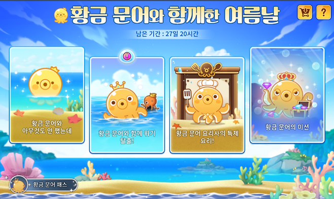 바쁜 유저들을 위한 배려도 잊지 않았다. 같은 기간, '황금 문어와 함께한 여름날' 이벤트가 진행된다. 이 이벤트의 가장 큰 특징은 게임에 접속하지 않은 시간에도 경험치가 자동으로 누적된다는 점이다.