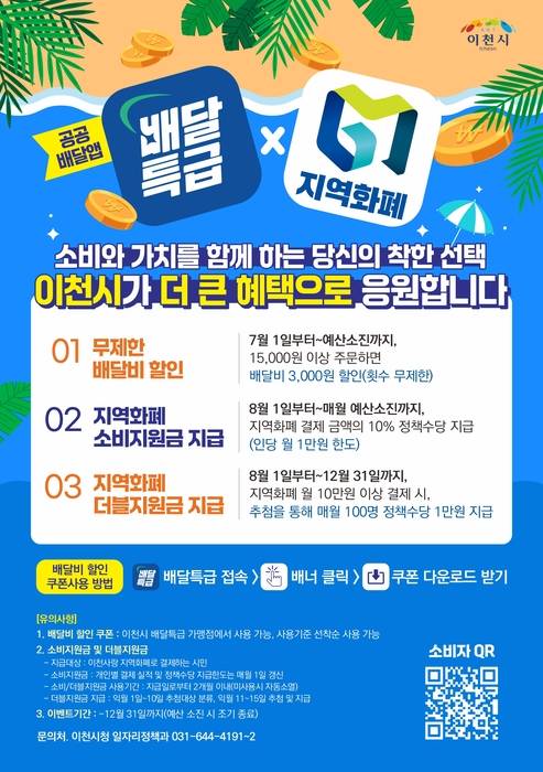 이천시민 '배달특급' 쓰면 더블지원금에 쿠폰까지 '풍성'
