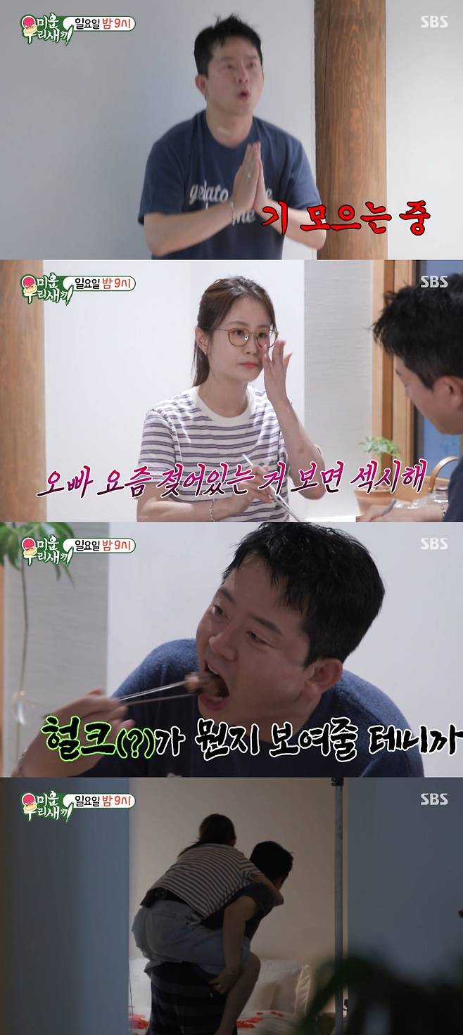 김지민은 "오빠 젖어있는 거 보면 섹시하다"고 플러팅을 했고, 김준호는 눈빛을 주고받으며 "오늘 기대해라. 헐크가 뭔지 보여주겠다"고 선전포고했다.