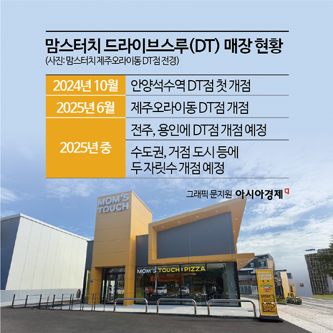 2일 업계에 따르면 맘스터치는 올해 안에 전주와 용인에 각각 세 번째, 네 번째 드라이브 스루 매장을 열 계획이다. 지난해 10월 처음으로 안양석수역 DT점을 개점했고, 올해 6월 제주오라이동 DT점을 오픈한 데 이은 추가 출점이다.