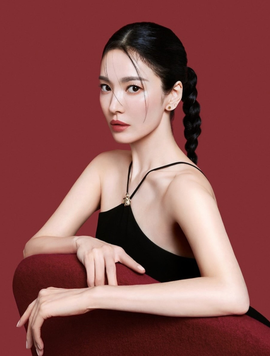 송혜교는 8월 1일 자신의 SNS에 블랙 원숄더 드레스를 입고 촬영한 화보 컷을 공개했다. 정갈하게 땋아 넘긴 묶음 머리와 또렷한 눈매, 강렬한 레드 립이 어우러져 마치 고전 영화 속 사대부가 여인을 연상케 했다.