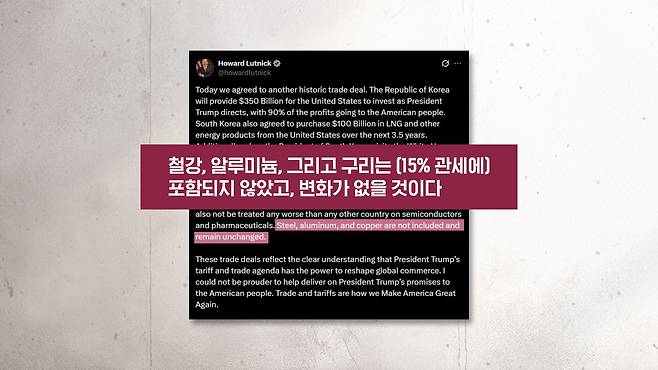 전문가 의견 ⑤ 철강·알루미늄·구리 전문가들이 또 우려하는 부분은요. 철강, 알루미늄, 구리에 대한 50%의 관세가 그대로 유지되었다는 건데요.