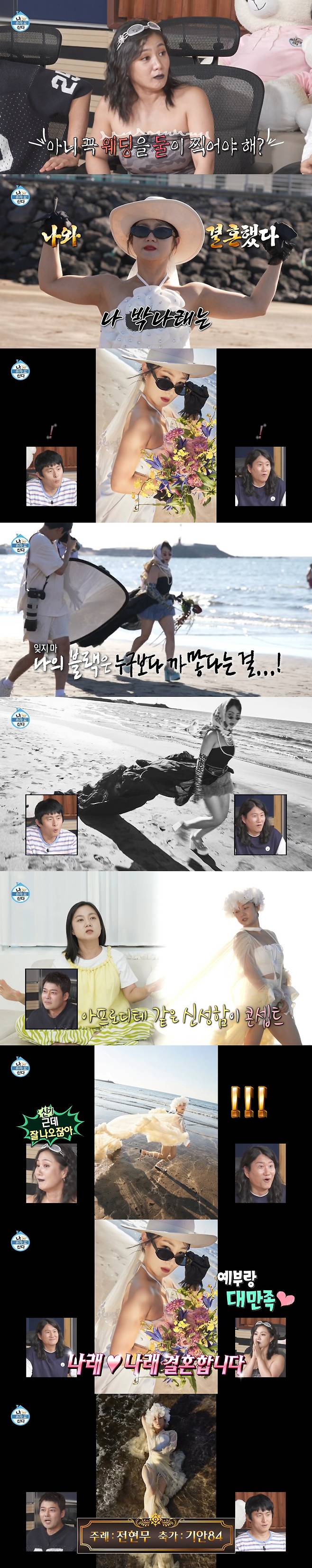 또한 박나래는 남사친이 스무 살 때 웨딩 촬영을 해주기로 약속했다며, 제주도 해변으로 나가 '나 혼자 웨딩' 화보 촬영에 돌입했다.