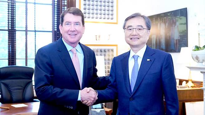 ▲ 조현 외교부 장관은 미국 워싱턴 D.C.를 방문한 1일(현지시간) 빌 해거티 미국 상원의원과 면담했다.