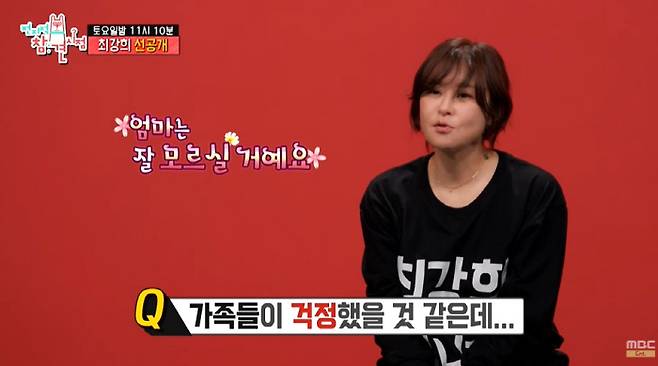 같이 담을 넘던 도둑을 만났던 것. 최강희는 "딱 넘었는데 누가 서 있더라. 그 사람 어깨에 거의 손을 올린 거다"면서 "그래서 돌아서 나가는데 다리가 안 떨어지더라"며 위기 상황에 굳어 버린 당시를 회상했다. 이어 그는 "근데 뒤에서 안 쫓아왔다. 그래서 나갔다"고 하자, 전현무는 "라이벌 도둑인 줄 알았겠다"고 해 웃음을 안겼다. 이에 미자는 "경찰에 신고를 했어야지"라고 하자, 최강희는 "그건 그렇다"고 했다. 최강희는 "엄마는 잘 모르실거다. 사람들한테 걱정 안 끼치는 선에서 아무도 없을 때"라며 웃었다.