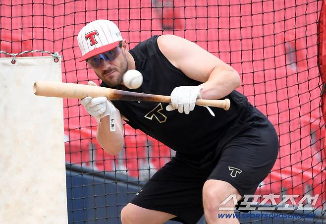 2일 광주 기아챔피언스필드에서 열린 KIA 타이거즈와 한화 이글스의 경기. KIA 위즈덤이 번트 훈련을 하고 있다. 광주=박재만 기자 pjm@sportschosun.com/2025.08.02/