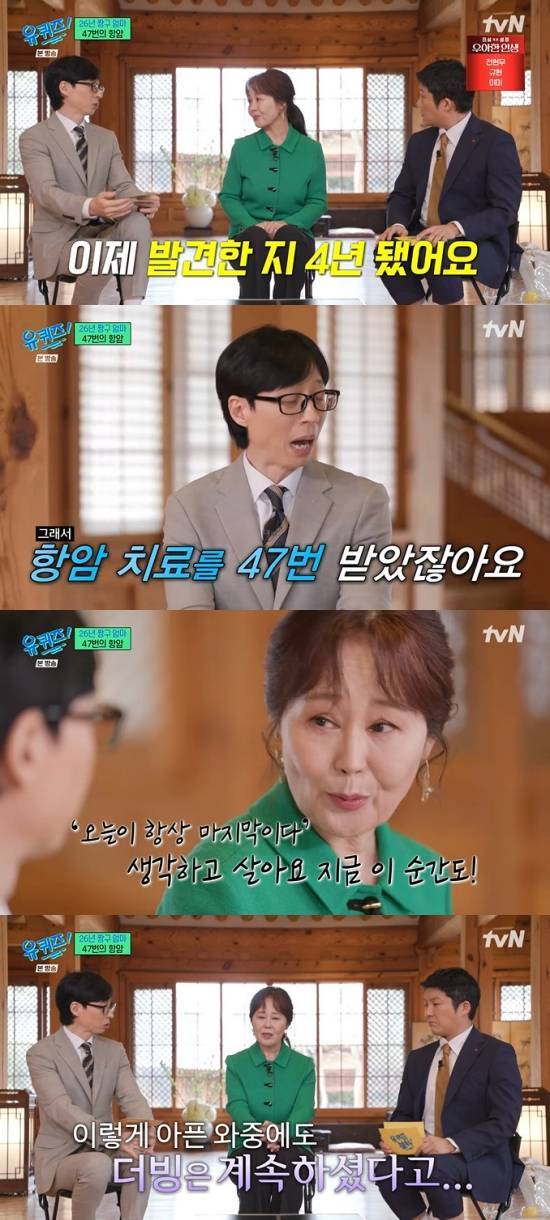 지난 4월, 강희선 성우는 tvN '유 퀴즈 온 더 블럭'(이하 '유퀴즈')에 출연해 암투병 소식을 전한 바 있다.