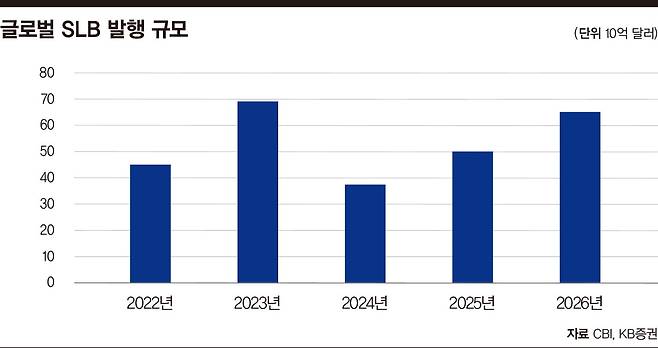 지속가능연계채권(SLB)도 이목이 쏠리는 투자상품 중 하나다. 키움증권은 현대캐피탈이 발행한 2000억 원 규모의 SLB를 KB증권과 공동 주관했다. 이번 채권은 2025년 들어 국내 최초로 발행된 SLB로, 발행사가 친환경 차량 금융상품 비중 확대라는 목표를 달성하지 못할 경우 투자자에게 추가 프리미엄(6bp)을 지급하는 구조다. SLB는 그린워싱을 방지할 수 있는 ESG 채권으로 불린다. 사전에 설정한 지속가능성 목표 달성 여부에 따라 투자자 보상이 달라진다. KB증권에 따르면 SLB 발행 시장은 2025년 450억~550억 달러, 2026년 600억~700억 달러로 회복세를 보일 것으로 전망된다.
