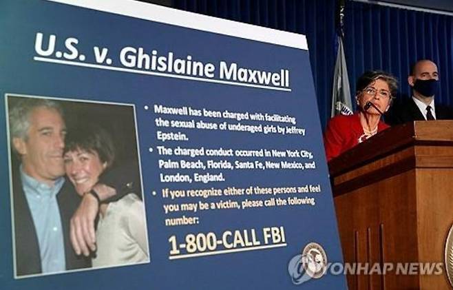 2020년 뉴욕서 열린 엡스타인 연인 맥스웰 사건 브리핑 [로이터 연합뉴스]