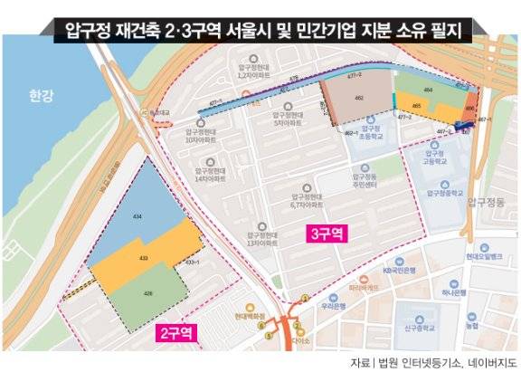 복병 만난 압구정 3구역 재건축… 서울시·현대건설 땅 소유 드러나