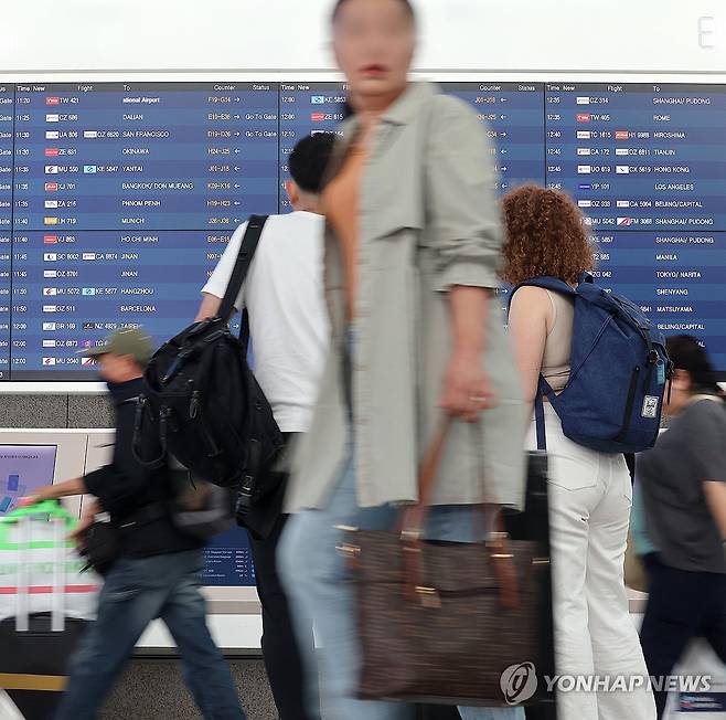 (영종도=연합뉴스) 김주형 기자 = 여름휴가 성수기인 3일 인천국제공항 제1여객터미널 출국장이 해외로 출국하는 여행객들로 붐비고 있다. 2025.8.3