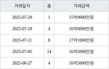 같은 기간 집계된 전용면적별 평균 실거래가격을 보면 △59㎡ 13억9622만원 △74㎡ 15억7757만원 △84㎡ 17억4650만원 등이다.
