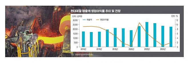 국내 철강업계는 건자재·가전 수요 둔화와 중국산 저가 물량 증가로 수년간 불황을 겪었다. 현대제철은 2022년 1분기 6974억원의 영업이익을 냈지만 올해 1분기에는 190억원의 손실을 냈다. 철근 생산량이 수요를 초과하면서 유통가격이 손익분기점 아래로 떨어졌기 때문이다.