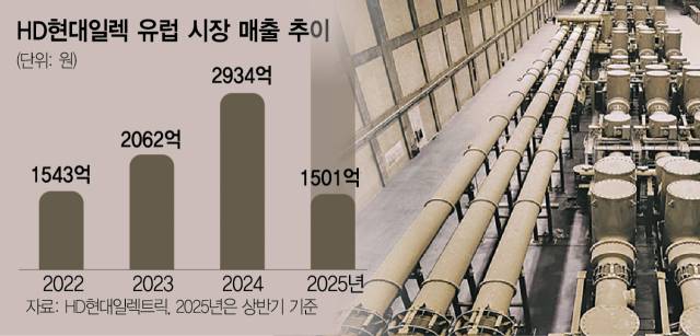 HD현대일렉트릭의 유럽 시장 매출 역시 급속도로 성장하고 있다. HD현대일렉트릭은 올해 상반기 유럽에서 1501억 원의 매출을 기록했다. 이는 2022년 연간 1543억 원에 버금가는 수준으로 올해 3000억 원 이상의 매출을 올릴 수 있을 것으로 관측된다. HD현대일렉트릭은 유럽에서 2023년 2062억 원, 지난해 2934억 원의 매출을 기록했다.
