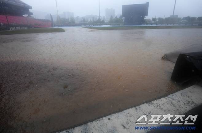 [포토] 폭우에 잠긴 광주 챔피언스필드 그라운드