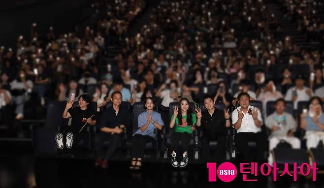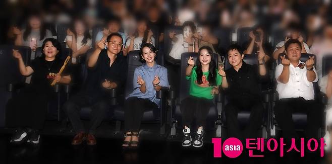 [텐아시아=조준원 기자]배우 필감성 감독, 조정석, 이정은, 조여정, 윤경호, 최유리가 3일 서울 광진구 자양동 롯데시네마 건대입구점에서 열린 영화 <좀비딸> 무대인사에 참석하고 있다.