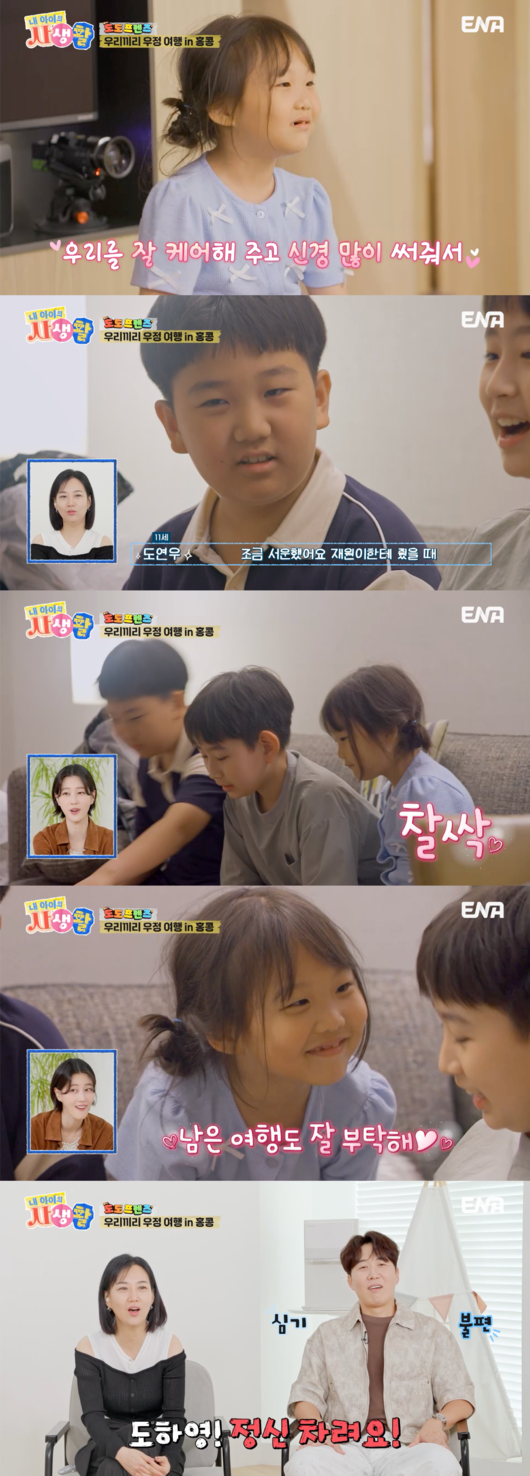 3일 오후 방송된 ENA 일요예능 '내 아이의 사생활'(이하 '내생활')에서는 '도도프렌즈' 연우, 하영, 재원, 예하, 서하의 우정 여행이 그려졌다.