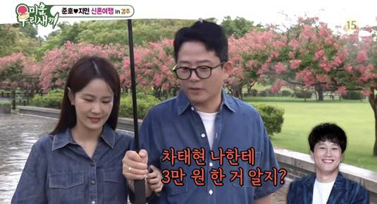 이어 김준호는 "차태현 나한테 3만 원 한 거 알지?"라고 말했고, 이에 김지민은 "나머지 큰 금액은 다 나한테 한 거 알지?"라고 답했다.