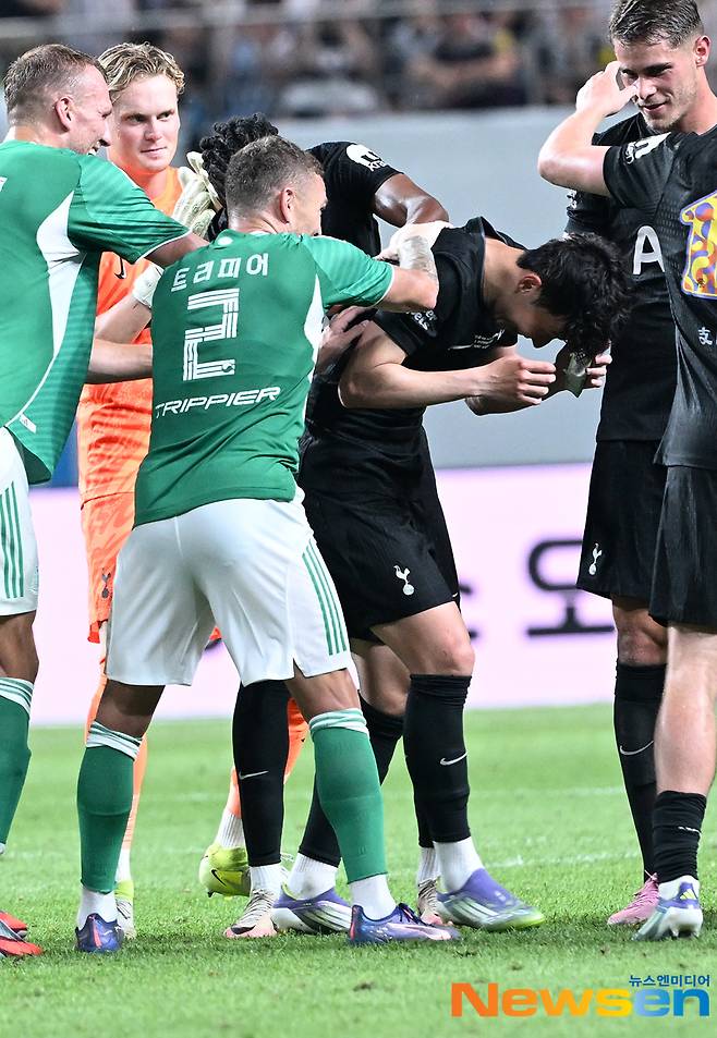 경기는 추가 득점 없이 종료됐다. 손흥민은 고별전을 마친 후 선수들과 포옹을 나누며 작별 인사를 이어갔다.(사진=손흥민)