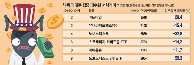 유나이티드헬스케어, 노보노디스크 같은 제약주도 어닝 쇼크로 큰 폭 하락하자 서학개미들의 집중 매수 대상이 됐다.
