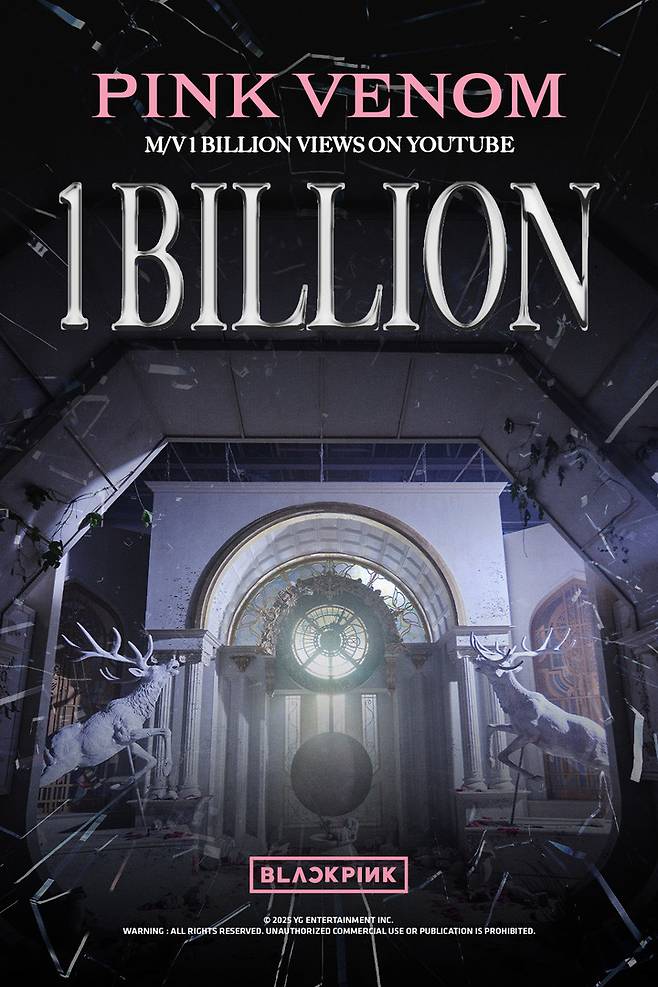 4일 YG엔터테인먼트는 블랙핑크의 정규 2집 선공개곡 'Pink Venom' 뮤직비디오가 이날 오전 0시 52분께 유튜브 조회수 10억 회를 돌파했다고 밝혔다. 지난 2022년 8월 19일 공개된 지 약 3년 만의 기록이다.