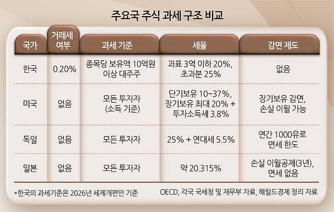 미국, 독일, 일본 등은 ‘대주주’ 기준 없이 모든 투자자에게 양도소득세만 부과한다.