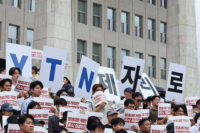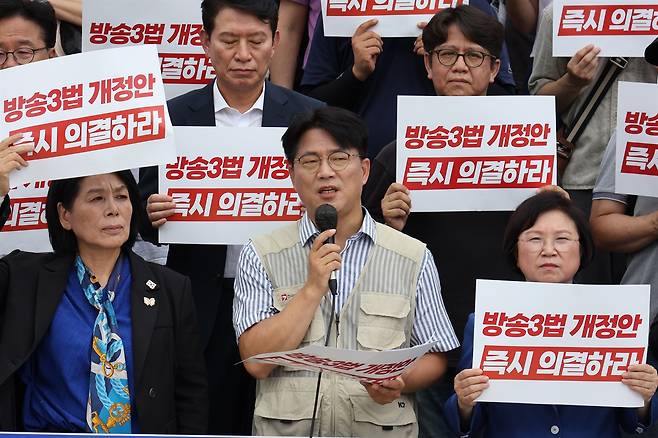 방송 노동자들과 시민사회단체들이 7월 임시국회 마지막 본회의에서 여러 민생 법안 개정안들과 더불어 방송3법 개정안도 상정할 것을 요구하는 목소리를 냈다.