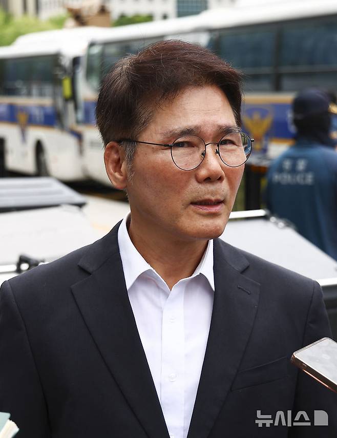 [서울=뉴시스] 김근수 기자 = 이찬우 사단법인 한국건설사회환경학회 회장이 4일 서울 종로구 KT 광화문빌딩 웨스트에 마련된 윤석열 전 대통령 부인 김건희 여사 의혹을 수사하는 민중기 특별검사 사무실로 참고인 조사를 받기 위해 출석하고 있다.