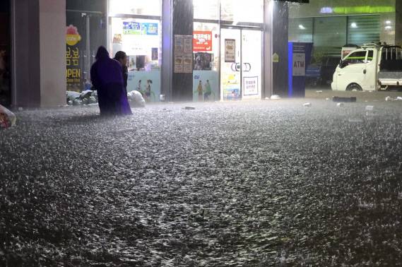 [무안군을 중심으로 광주·전남 곳곳에 극한호우가 쏟아진 3일 오후 광주 북구 운암동 거리가 침수됐다.(사진=연합뉴스)]