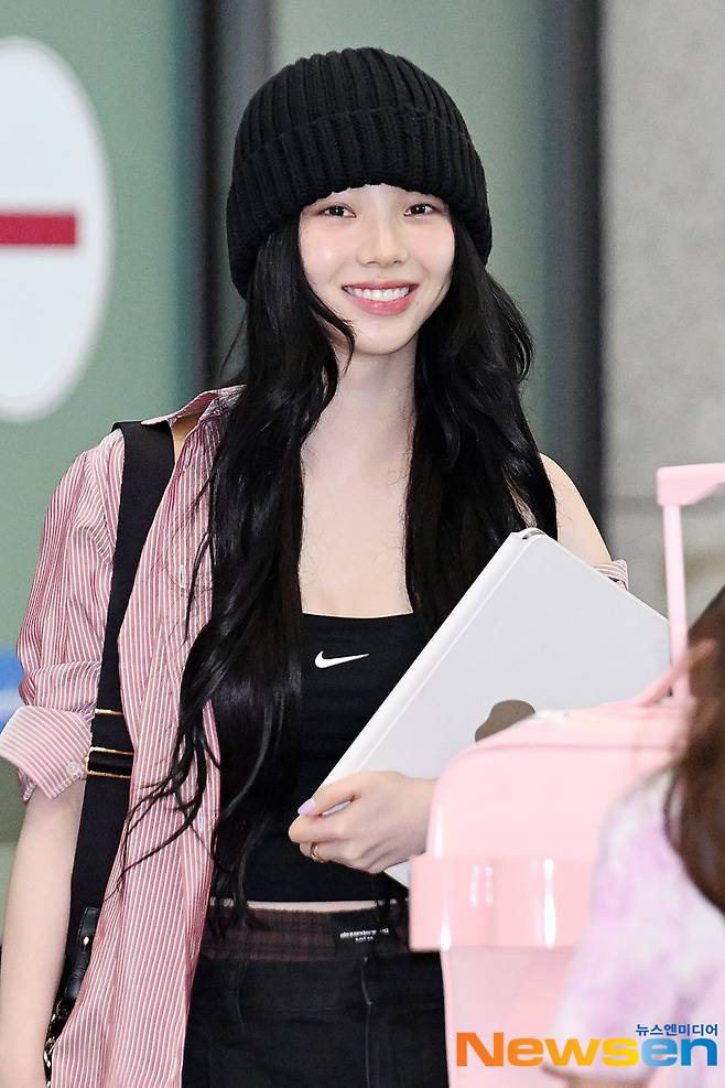 에스파(aespa) 멤버 카리나가 8월 4일 오후 인천 중구 운서동 인천국제공항 제 1여객터미널을 통해 해외 일정을 마치고 미국 로스앤젤레스에서 입국하고 있다.