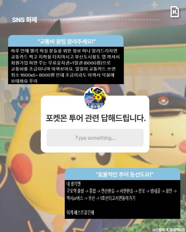 부산교통공사와 롯데백화점 등이 기획한 이번 이벤트는 SNS에서 ‘교통비 절약법’ ‘효율적인 투어 동선’ ‘스탬프 위치’ 등의 정보가 공유되며 화제를 뿌린다.
