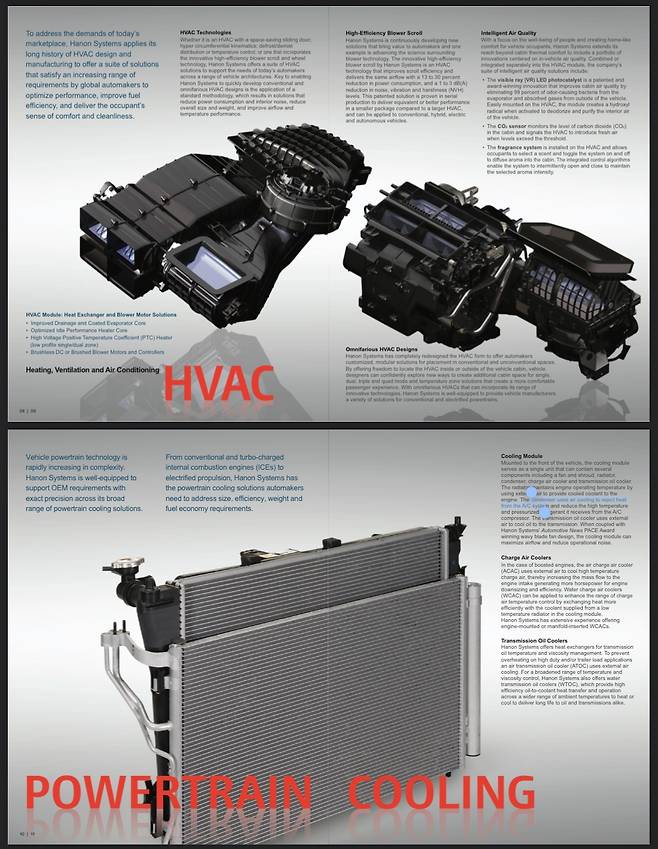 | ▲ 현대·기아차 1차 하청업체인 한온시스템이 생산하는 제품들. |
