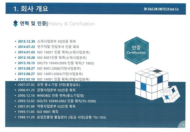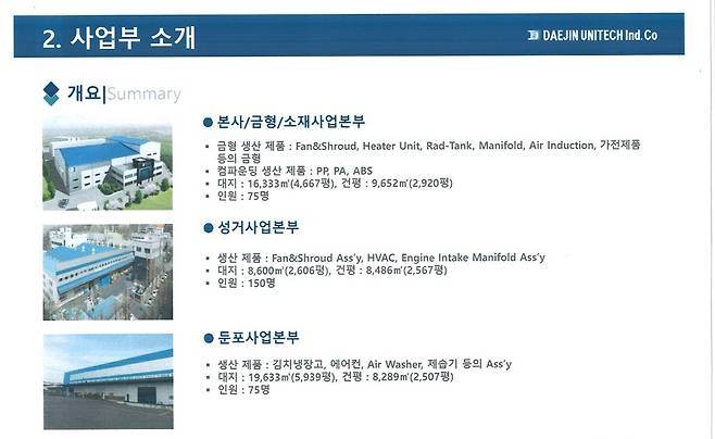 | ▲ 대진유니텍에서 만든 회사 개요 |