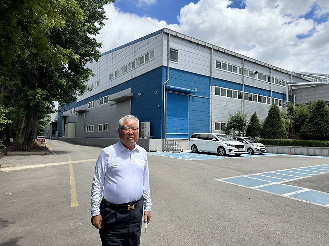 | ▲ 과거에 운영하던 공장 앞에 선 송윤섭 전 대진유니텍 대표. 대진유니텍은 현대·기아차 2차 하청업체였다. |