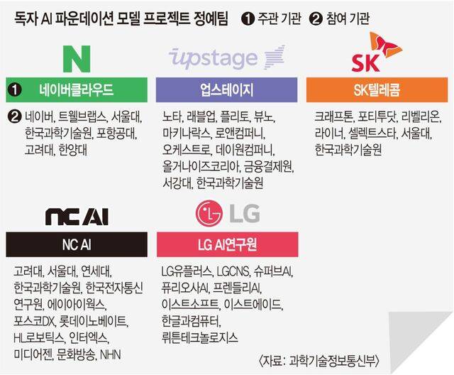 4일 과학기술정보통신부 발표에 따르면 정예팀으로 선정된 5개 팀은 독자적 기술과 개방형 생태계, 도전적 목표, 국가 AI 생태계 구축 등에서 높은 평가를 받았다. 정부는 이들 기업이 수준 높은 AI 모델 개발 역량을 보유한 것으로 평가했다.