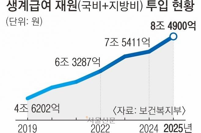 문제는 재정이다. 지난해 기준 중위소득을 6.42% 인상하면서 생계급여 예산이 9489억원(7조 5411억→8조 4900억원) 늘었고 올해도 6.51% 인상으로 추가 증액이 불가피하다.