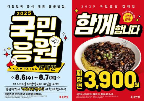5일 더본코리아에 따르면 이번 행사는 6~7일 이틀 동안 홍콩반점 매장을 방문하는 고객을 대상으로 하고 포장 및 배달 주문 시에는 혜택이 적용되지 않습니다. 다만 홀 영업이 어려운 배달 전문 매장의 경우에는 포장 주문 시 짜장면 3900원 혜택을 받을 수 있습니다.