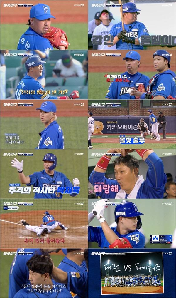 지난 4일 유튜브 스튜디오C1 채널을 통해 공개된 야구 예능 '불꽃야구' 14화에서는 9회까지 이어진 접전 끝에 파이터즈가 5대4로 승리하는 극적인 장면이 담겼다.